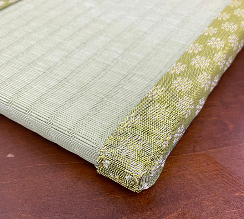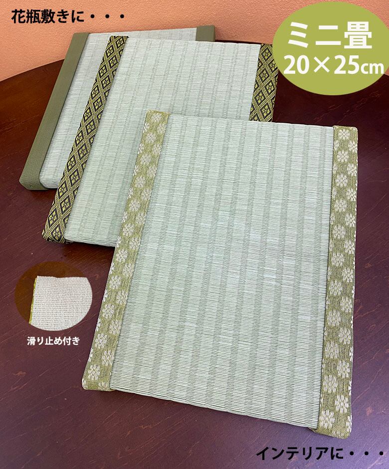 【★ミニ畳で和の心を感じる★】 畳のぬくもりと和の趣きを手軽に楽しめる、ミニ畳20×25cmの登場です。和室はもちろん、リビングや玄関などの小物置きにもぴったりです。上質な和紙表と滑り止め機能で、安心してご使用いただけます。 サイズ:約20×25cm / 厚さ2.5㎝ 生産国:日本(自社工場にて製作) 材質 畳表:和紙 中材:ダイケンボード厚さ15㎜ 不織布滑らないノンスリップ加工 【おすすめポイント】 ●裏に滑り止め付きで、置いた物をしっかり支えます! ●お部屋のインテリアに合わせやすいシンプルなデザインです。 ●ヘリは36柄からお選びいただけます。 ※写真はイメージです。 【納期について】 完全受注生産につき、発送まで約7〜10日間ほどお時間を頂戴しております。ご了承いただけますようお願い申し上げます。 【発送について】 ヤマト運輸にて発送します。 【送料について】 980円かかります。
